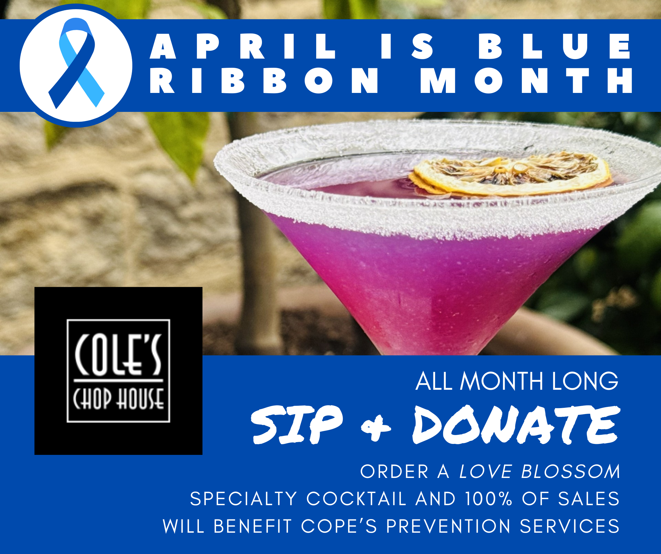 ALL MONTH LONG: Cole’s Chop House Sip & Donate